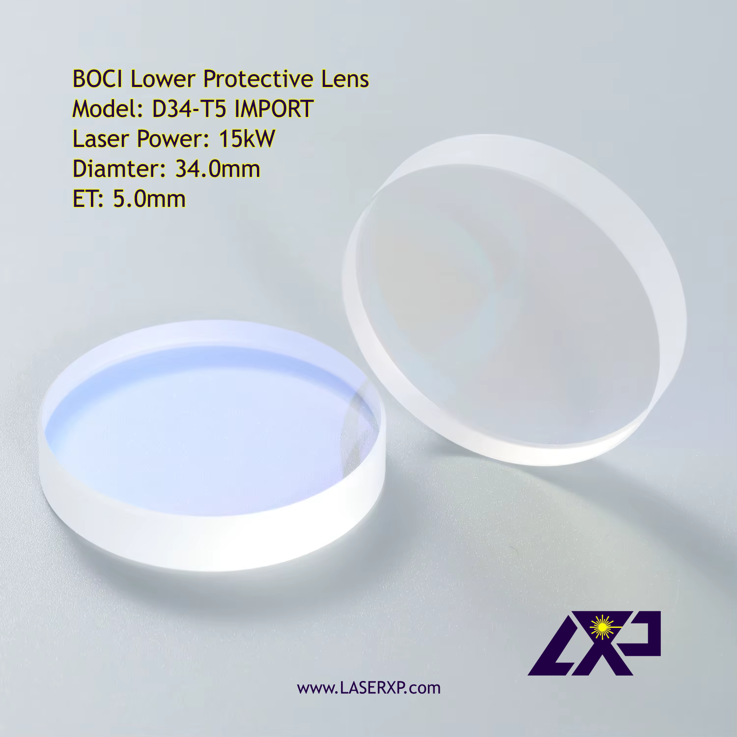 BOCI Lower Protective Lens D34.0T5 15KW for BLT4/BLT6 Series Intelligent cutting heads, supports up to 15kW lasers.